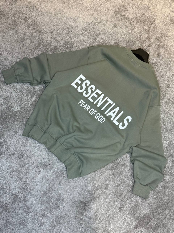 سویشرت برند ESSENTIALS Fear of God با طراحی مینیمال و لوگوی چاپی بزرگ در پشت لباس، یکی از پرفروشترین آیتمهای استایل خیابانی (Streetwear) به شمار میاد.